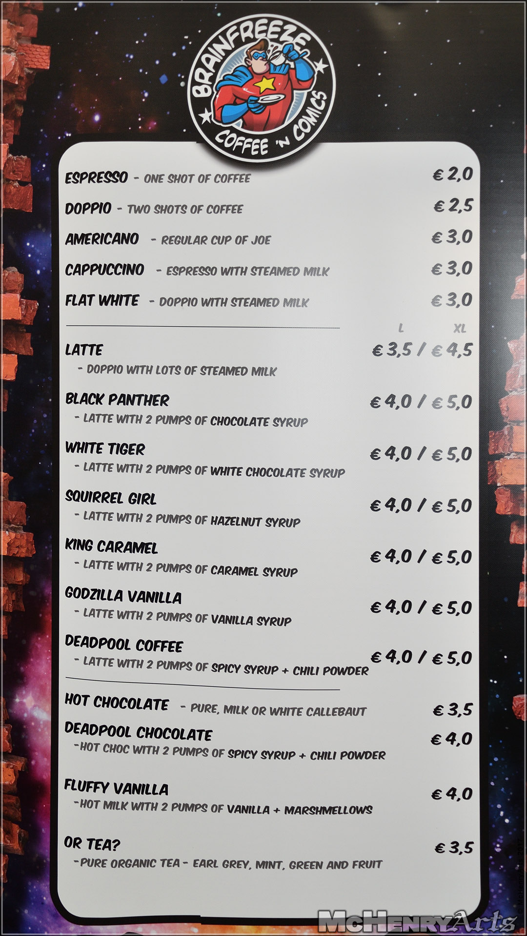 Ebenso ist ein Kaffee-Stand eigentlich viel zu wenig, aber auch hier war es wie schon beschrieben die Warterei wert. Vor allem, die Betreiber haben ein Café mit Comicshop und dementsprechend alle Kaffee Spezialitäten Nerdig-benannt. Bei der Auswahl kam für mich sowieso nur ein White Tiger in Frage, allein schon wegen des Namens 😉 . Da deren Laden/Café in der nähe meiner Route nach Gent liegt, werde dort wohl auf meiner nächsten Fahrt zur F.A.C.T.S. einen Zwischenstopp machen.