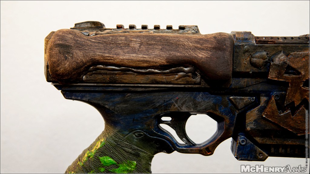 So entstand die Geschichte, dass die Bolter-Pistole eines Ultramarines von den Greenskins “gefunden” wurde und dies sie dann zu einer Slugga umgebaut haben. Aber trotzdem kann man immer noch eindeutig erkennt was es mal war und vor allem wem sie mal gehört hat.