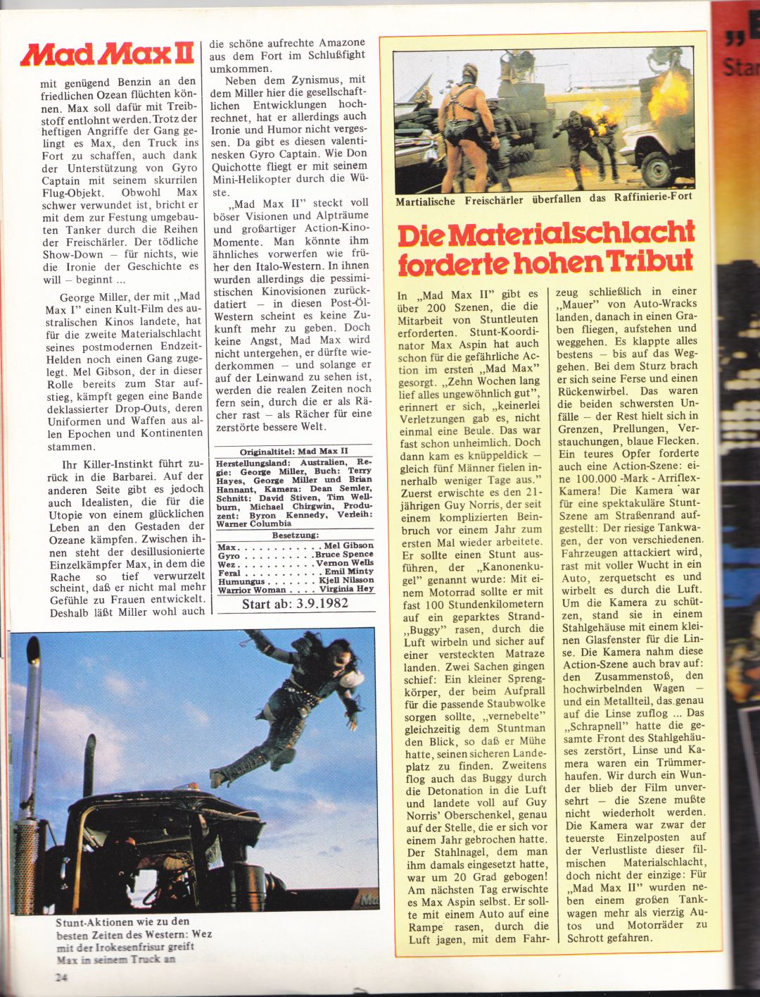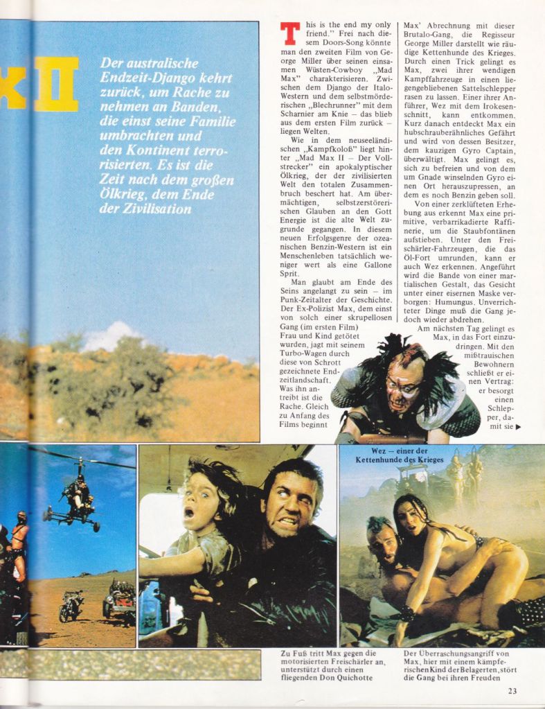 Hier noch ein paar Scans von Zeitschriften Berichten für Mad Max 2: The Road Warrior: