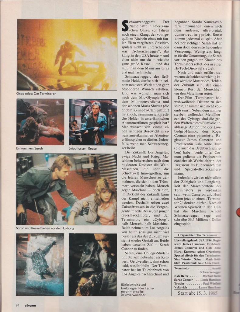 When “The Terminator” was released in 1984, it was largely well received by critics, with the film being praised in particular for its dark atmosphere and innovative narrative style. The New York Times emphasized that despite its comparatively low budget, “The Terminator” was well thought out and well directed. James Cameron’s talent for tight, suspense-filled storytelling was particularly emphasized. The use of time travel and the way the film addressed the topic of fate impressed many viewers and critics.