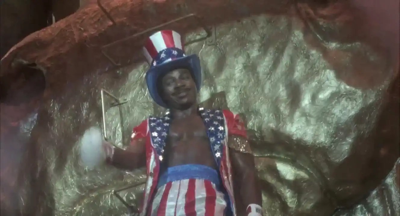 - The iconic “Living in America” entrance sequence featuring Apollo Creed and James Brown is considered one of the most over-the-top and famous show openings of the 1980s. It was not only technically elaborate, but also culturally significant, as it portrayed American pop and show culture in a maximally exaggerated way. The scene was later parodied, quoted, and even used in music videos on multiple occasions.
