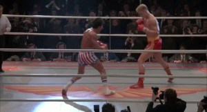 The final fight in Moscow develops into an audiovisual spectacle of almost operatic force. The arena seems like a political monument, the audience hostile, the atmosphere tense. While Rocky is initially brutally dominated and literally smashed, his unwavering determination, tenacity, and unyielding fighting spirit begin to impress not only the audience but even Drago himself. The Soviet giant increasingly realizes that Rocky is not just an opponent, but a man of unbroken moral strength.