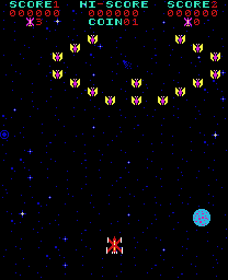 Technically, Phoenix was solidly and uniquely implemented for its time. In terms of hardware, the game used an 8085A CPU, along with a special sound chip, 16 KB of ROM, and 4 KB of RAM. The game ran in a fixed vertical screen layout and was released as a classic arcade cabinet.