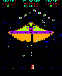 Equally significant was the structure featuring several clearly distinguishable phases within a single playthrough. Instead of merely repeating the same enemy formation faster and faster, Phoenix built up a small narrative arc. Combined with the music playing during gameplay—which was still unusual at the time—this made it feel more modern than many of its direct competitors.